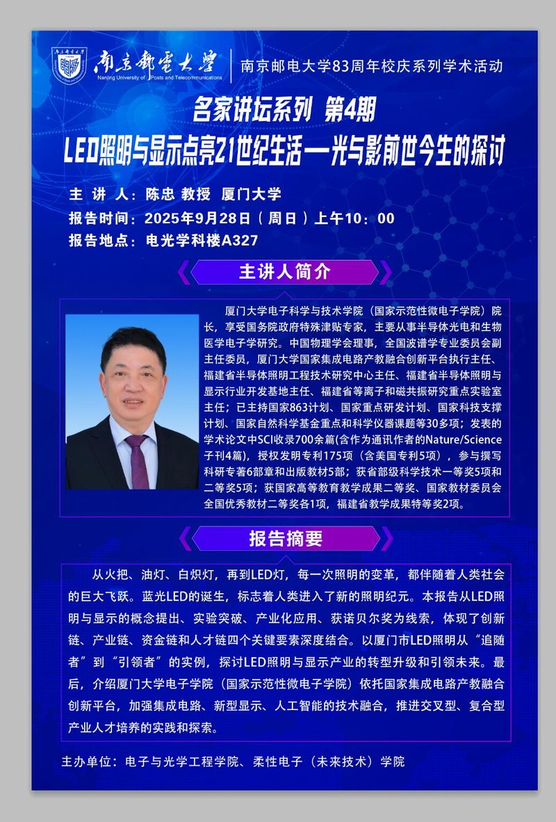 学术报告:LED照明与显示点亮21世纪生活——光与影前世今生的探讨