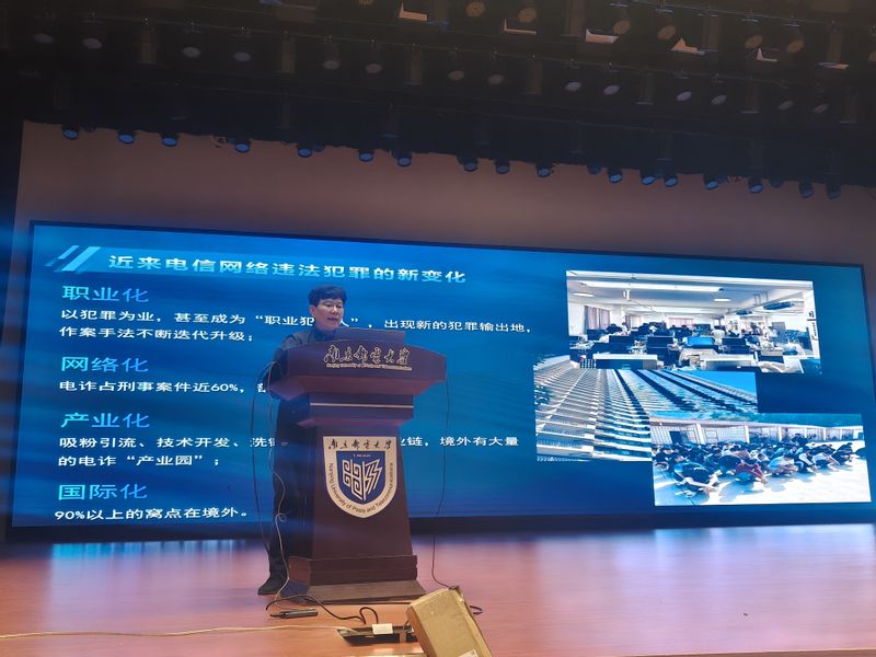 为提高新生防范电信网络诈骗“免疫力”,切实有效提升法治校园建设水平。11月5日晚,做爱视频 精心组织了一场题为“反诈是门必修课,南邮宝宝人人过”的反诈主题报告会。报告会特邀南京市公安局资深反诈宣传员陈红燕警官主讲,学院2025级本科新生齐聚一堂,共同学习这堂重要的“安全必修课”。