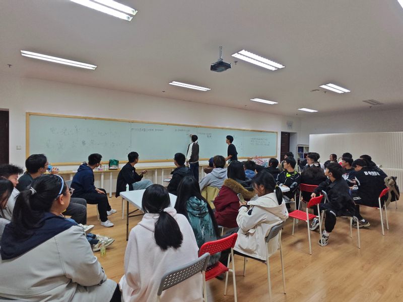 会上,学院心协主席董洁、胡天旭与心协各部门负责人一同对新成员的加入表示热烈欢迎,系统介绍了心协的宗旨、部门架构与工作职责,使新成员们对心协有了进一步认知,也明确了自身的责任。随后,新成员们围绕多个趣味话题,如“最幸福的时刻”“想成为的样子”等,进行了自我介绍,分享了个人想法。现场气氛活跃,幽默的发言引发了阵阵掌声。紧接着,趣味十足的“名字接龙升级版”和“故事接龙”游戏,凭借趣味惩罚机制和零食礼包激励机制,将现场气氛推向高潮。同学们在游戏中各显神通,现场欢呼声与掌声不断,成员们在“创意故事”与“即兴才艺表演”中有效增进互相了解,为后续活动营造了轻松愉快的氛围。在心理健康教育培训环节,培训以经典心理学“双实验+三效应”为核心,协会负责人结合“阿希从众实验”“感觉剥夺实验”讲解了“焦点效应”“破窗效应”“皮格马利翁效应”等心理现象,帮助新成员学习了心理知识。会议尾声,心协负责人鼓励大家积极参与协会的各项活动,提升自己的心理素质和综合能力,结合自身优点与特长,为学院心理健康教育工作贡献智慧与力量。
