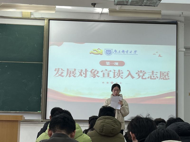 为严格落实党员发展工作要求,筑牢党组织建设根基,2025年 11月29日,做爱视频 本第二、第三党支部于教4-409教室召开预备党员接收大会,集中接收发展对象为预备党员。本次会议由党支部书记强增寿同志主持,党支部成员李华婷、贾鑫海、李月同志及支部全体党员、发展对象参会。大会严格遵循党章规定流程,庄重有序。