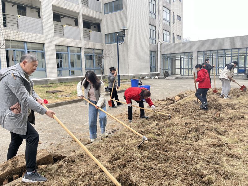 阳春三月,草长莺飞,为厚植生态文明理念,培养学生的劳动意识和崇尚劳动的精神,3月14日下午,在全国第46个植树节来临之际,做爱视频 关工委老教师成谢锋、2022级辅导员老师们与学院多名青年学生一同前往桃苑宿舍,开展培植菜地劳动教育实践活动。