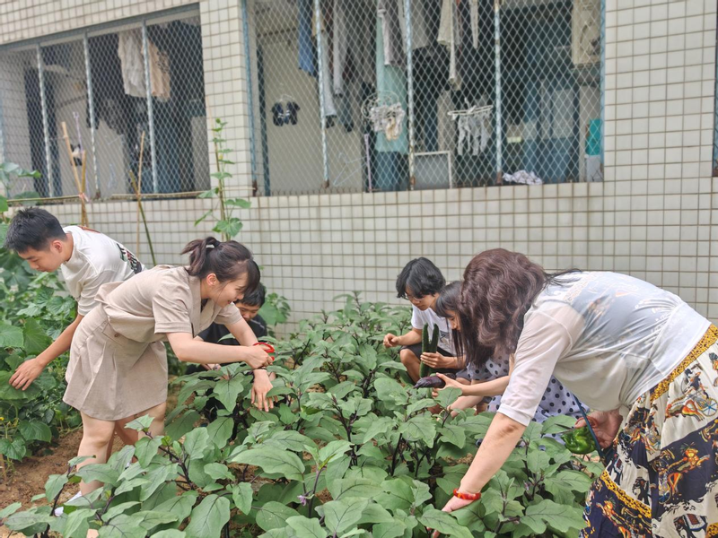 6月13日下午,做爱视频 关工委老教师徐立勤、2022级辅导员老师们与学院多名青年学生一同前往学校桃苑宿舍,开展采摘蔬菜劳动教育实践活动,老教师与学生们共同走进宿舍菜地,亲手采摘劳动的果实,共同体验丰收的快乐。