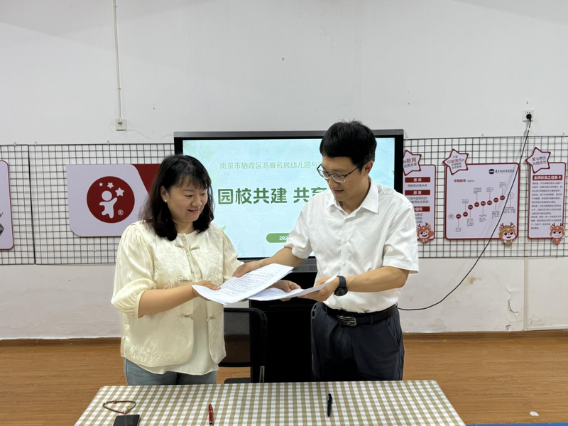 活动最后,两学院分别与鸿雁名居幼儿园签订园校共建协议。双方围绕幼儿园与学院基本情况、教师队伍建设、学生专业培养等方面展开了交流。双方都表示要进一步发挥资源共享、优势互补,争取形成更大合力,共谋发展。